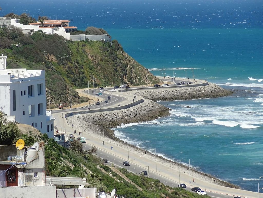 Tangier, a city in northern Morocco, is a vibrant blend of cultures thanks to its strategic location at the crossroads of Europe and Africa. It has been a haven for artists and writers, known for its bustling markets and stunning coastal views.