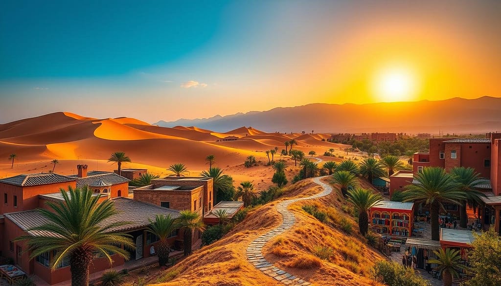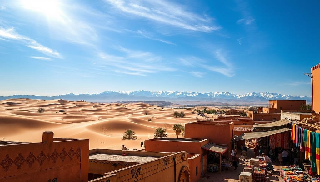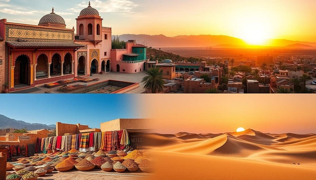Every traveler in Morocco is drawn to its magic. Guides like Mustapha make sure your trip is both enriching and smooth. You’ll explore Fes’s winding streets and enjoy the desert’s peace under the stars. These tours in Morocco create memories that last long after you leave. With over 1,900 Tour In Morocco, you’ll find one that fits your dreams. These packages have great reviews and a 4.5-star rating. They offer 24/7 customer care to meet all your needs. Key Takeaways Why Morocco is a Must-Visit Destination Morocco is a mix of stunning landscapes, rich history, and lively cultures. It’s a top spot for travelers. The Sahara Desert lets you sleep under the stars and camp with Bedouins. Join Morocco guided tours to dive into its beauty. morocco guided tours Adventure lovers can hike in the High Atlas Mountains. You’ll see local villages and amazing views. Coastal towns like Essaouira offer fresh seafood and a relaxed atmosphere. Exploring Fes and Marrakech’s medinas is like traveling back in time. You’ll find hidden treasures in narrow alleys. Morocco’s imperial cities, like Fez and Marrakech, are full of history and culture. Don’t miss the Hassan II Mosque in Casablanca and the Roman ruins at Volubilis. Morocco tours also take you to Aït Benhaddou, famous from “Gladiator” and “Game of Thrones.” Trying Moroccan food is an adventure. Enjoy couscous, tagine, and Berber omelets. Try a camel burger at Café Clock. Learn to make these dishes in cooking classes. Finish with a refreshing mint tea. From Marrakech’s Jemaa el-Fnaa square to the Rif Mountains, Morocco is full of amazing experiences. Go on Morocco tours to see its incredible diversity. The Best Time to Take Tours in Morocco Morocco is a year-round destination with diverse climates and landscapes. Knowing the best seasons is key for an unforgettable trip. Spring and Fall are the top times to explore this North African treasure. Spring: Blooming Landscapes and Mild Weather Spring, from March to May, is perfect for luxury tours in Morocco. Temperatures are pleasant, between 20-25°C (68-77°F). It’s great for visiting historic medinas and hiking in the Atlas Mountains. March brings the Almond Blossom Festival in Tafraoute, adding color to your trip. By April, hotels are full, thanks to the beautiful weather and more tourists. May’s Rose Festival in Kelaat M’Gouna fills the air with roses. Fall: Optimal Conditions and Photography Opportunities Fall, from September to November, is another great time for tours. It offers mild weather and fewer people, ideal for city and desert tours. September’s Date Festival in Erfoud adds to the culinary fun. October is a photographer’s dream, with clear skies and perfect temperatures. November has mild weather and fewer crowds, perfect for mountain adventures and luxury tours. Top Destinations to Explore During Your Morocco Tour Starting a journey with *Marrakech tours* or any *explore morocco tours* is a thrilling adventure. You’ll see a country full of history, culture, and beautiful landscapes. Marrakech and Fes are two must-see places, each with its own charm and experiences. Marrakech: The Red City Marrakech is known for its lively medina and is a mix of romance, adventure, and luxury. It has over 843 tours, making it a favorite starting point for many. You can explore historic palaces and busy souks, try traditional foods, and see local crafts. Just outside Marrakech, the Sahara Desert awaits. Here, you can enjoy luxury glamping, camel rides, and stargazing. Marrakech offers a mix of excitement and relaxation, making your visit unforgettable. Fes: The Cultural Capital Fes is Morocco’s cultural heart, with its ancient medina and Al Quaraouiyine University. It’s a hub for *cultural tours morocco*, attracting visitors with its artisan workshops, delicious food, and lively markets. The city’s medieval streets are filled with stories of old civilizations. There are also Roman ruins and the oldest library nearby. For those wanting to dive into Moroccan culture, Fes is a must-visit. Unforgettable Experiences on Morocco Sightseeing Tours Going on Morocco sightseeing tours gives you many unforgettable moments. You’ll see amazing natural sights and dive into the local culture. It’s a mix that makes your trip special. Desert Safari: Camel Rides and Camping Under the Stars Exploring the Sahara Desert on a camel is a top highlight. You’ll ride through the golden sands with a Berber guide. It’s a chance to see the Sahara’s beauty up close. After the ride, you’ll camp in a traditional Berber camp. Here, you can watch the stars all night. It’s a unique way to see the desert and meet the Berber people. Cultural Experiences: Cooking Classes and Artisan Workshops If you like getting your hands dirty, try cooking classes and artisan workshops. In Fes, you can learn to make Moroccan dishes like tagine. Local chefs teach you their family’s recipes. In Marrakech, you can learn crafts like pottery and weaving. These workshops let you see how Moroccans live and create. It’s a great way to understand their culture. Experience Details Desert Safari Camel treks, Berber camps, starry nights Cooking Classes Learn to cook tagine and couscous, guided by local chefs Artisan Workshops Participate in pottery, weaving, and leatherworking Popular Morocco Travel Packages Looking to dive into Morocco’s vibrant culture and stunning landscapes? There are many morocco tour packages for every interest and preference. From city explorations to desert adventures, these morocco travel packages promise an unforgettable trip. The 8-Day Essential Morocco tour package is a great mix of culture and history. You’ll visit famous cities like Fez, Marrakesh, and the Sahara Desert. The 13-Day Kaleidoscope of Morocco tour offers a deeper dive, with camel rides in the Sahara and stays in traditional riad hotels. These packages include guided tours morocco led by expert guides. They make t